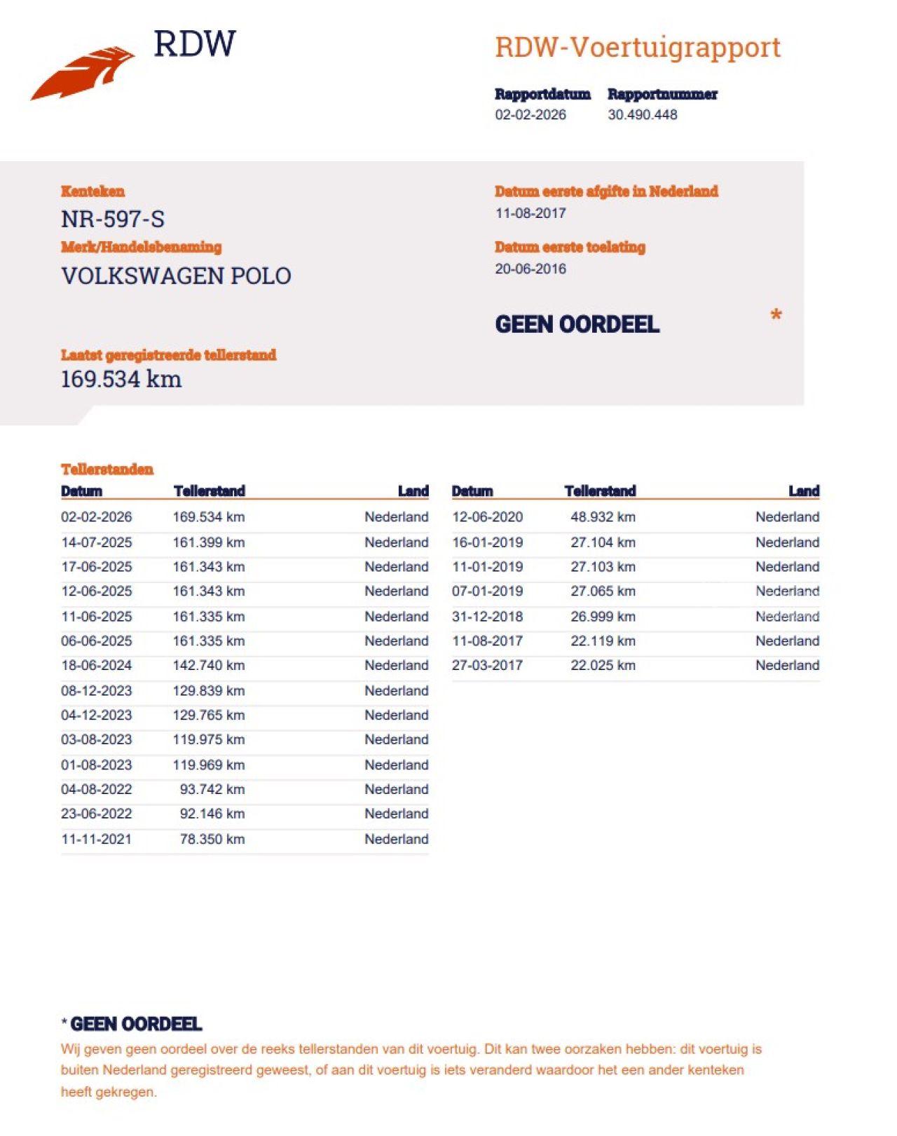 Kilometerstand: 169.534 KM
