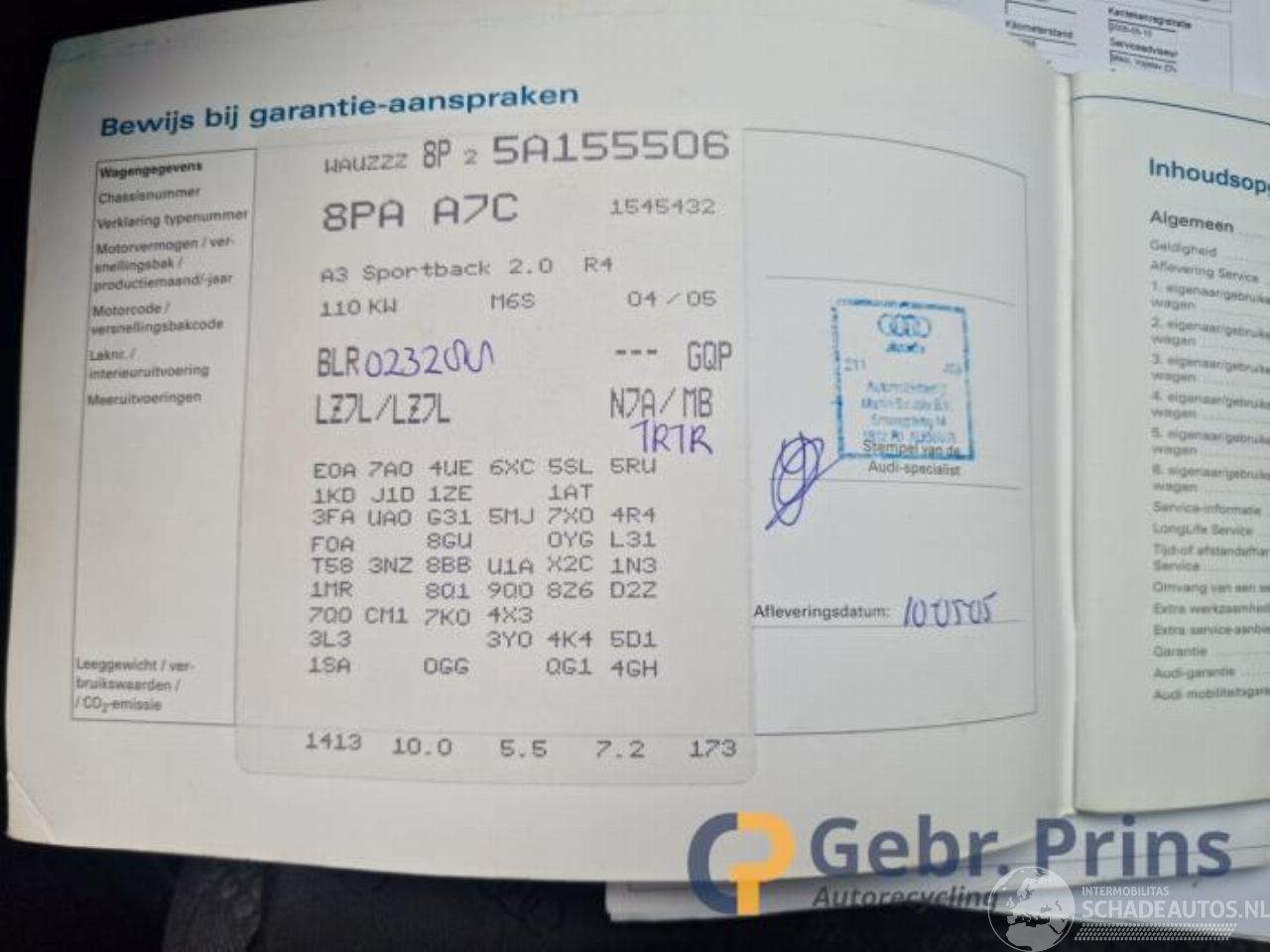 Modell: A3 A3 Sportback (8PA), Hatchback 5-drs, 2004 / 2013 2.0 FSI 16V