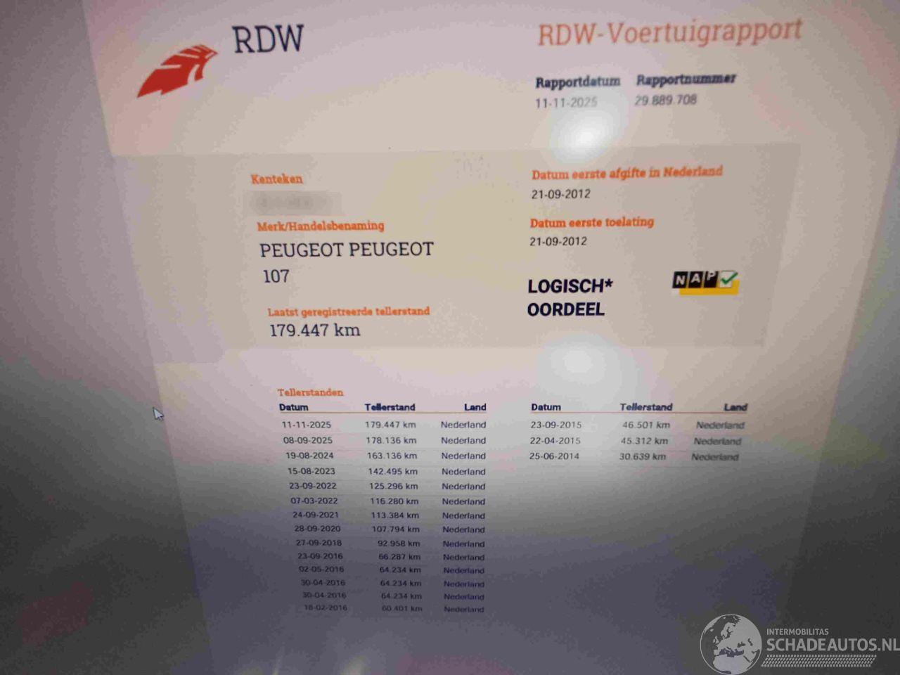 Vaurioauto PEUGEOT PEUGEOT 107