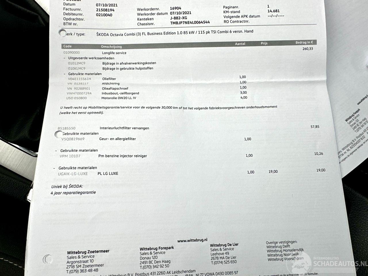 Modello: OCTAVIA 1.0 TSI 116pk 6-bak Greentech Bus Edition Plus - Xenon - Virtual - Camera - Pdc - Carplay - Clima - Cruise